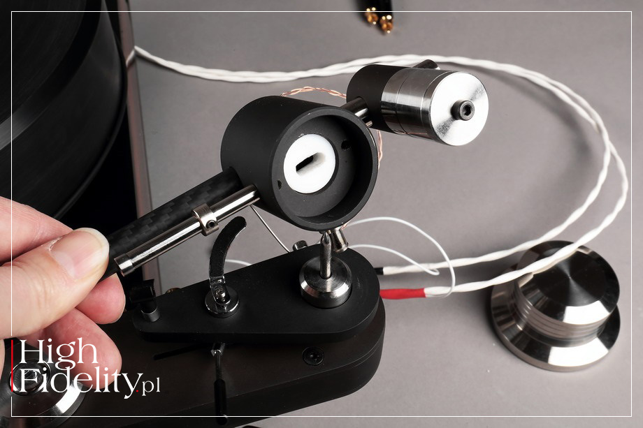 It was cut at the end in a characteristic way and moved on the stem - it was a unipivot arm. After many experiments, mainly with tube damping and horizontal movement damping, an arm was created that is currently available with both the T1 and the tested model. It’s a unipivot 12.5-inch long tonearm with following features: