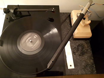 The very first tonearm – Feb. 23rd 2018. Photo from TF’s archive I started with tonearm. After several months of testing, a 14-inch monster was developed armed with the Audio-Technica AT440 MLB cartridge, and I used an old, simple Pro-Ject turntable for testing. It looked comical, but it sounded so good that I got rid of all doubts, and the work spun for good. After a year and a half and five versions of the design, I dared to present my work to Krzysztof Majchrzak from the Media-Hit showroom. He immediately proposed that I present the turntable during the cyclical meeting "Good evening with a vinyl record" organized jointly by Vinylhouse (Bogusław Ziębowicz) and Media-Hit at the Spirala club in Gliwice.