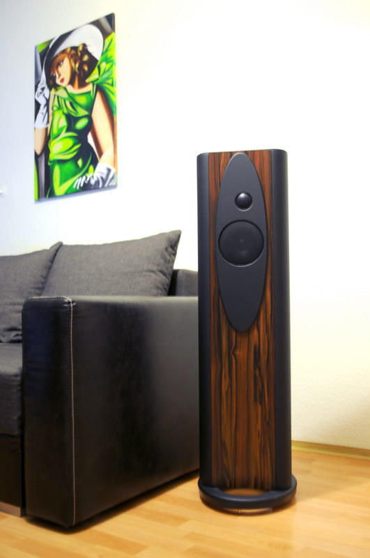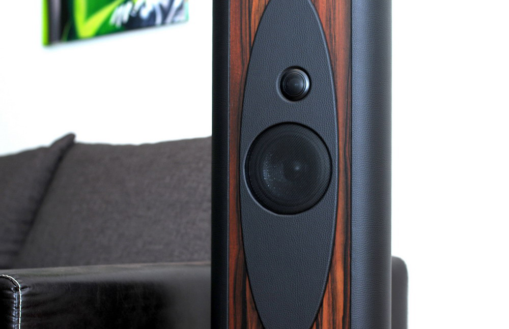 Electra2 kolumny z eleganckimi, płaskimi obudowami. Zaprojektowano je zgodnie z systemem CRCdesign, w którym wszystkie elementy i materiały konstrukcyjne dobrane są tak, aby współpracowały z głośnikami i razem z nimi tworzyły ostateczny efekt brzmieniowy. Obudowy stoją na stabilnym, owalnym cokole, zaprojektowanym w sposób umożliwiający swobodną pracę podwójnego wylotu bas-refleks zlokalizowanego na dolnej ściance. Tony niskie i średnie przetwarza głośnik, którego parametry można określić jako wyczynowe. Jego celulozowa membrana waży mniej niż 9 gramów, a mimo to, ten 13 cm (5,5”) głośnik ma rezonans własny poniżej 40 Hz, relatywnie wysoką efektywność (88 dB) i bardzo dobre charakterystyki impulsowe. Takie właściwości posiada niewiele głośników, nawet znacznie większych od tych zastosowanych w kolumnach Electra2. Jak mówi producent, głośnik wyposażono w system BAD, który w połączeniu z jego parametrami, pozwolił na uzyskanie ciepłego i naturalnego brzmienia z dużą ilością szczegółów w zakresie średnich tonów oraz zaskakująco szybkim i wypełnionym zakresem basowym. Tony wysokie przetwarzane są przez lekką jedwabną kopułkę o średnicy 20 mm napędzaną podwójnym magnesem neodymowym. Głośnik ten także wyposażono w system BAD, który poprawił odtwarzaną przestrzeń i nadał gładkości brzmieniu wysokich tonów. Oba głośniki osłonięte są metalowymi maskownicami. „Sercem” Electry2 jest całkowicie na nowo zaprojektowana zwrotnica z filtrami drugiego rzędu i korekcjami impedancji. Układ filtrów korzysta z opracowanych przez Divine Acoustics systemów SGP oraz RFpath. Pierwszy z nich skupia masę całego układu w jednym punkcie, skraca drogę sygnału i umożliwia właściwe i szybkie rozładowywanie kondensatorów. System RFpath natomiast umożliwił całkowitą rezygnację z rezystorów szeregowego i równoległego w torze głośnika wysokotonowego. Poprawiło to znacząco szczegółowość brzmienia oraz możliwości tworzenia przez Electrę2 sugestywnej przestrzeni wokół instrumentów. Sygnał do głośników biegnie kablami z miedzi OFC o ściśle określonych długościach, dobranymi pod względem brzmienia zestawu. Kolumny dostępne są w sześciu wariantach wykończenia: heban, venge, zebrano, macassar, oliwka, śliwa. Boki, cokół oraz pozostałe elementy pokryte są czarną ekoskórą. Electra2 to kolumny stereo odpowiednie do pomieszczeń o powierzchni od 9 do 20 m2, przeznaczone do współpracy ze wzmacniaczami tranzystorowymi i lampowymi o mocy nominalnej 3-60 W. Mogą być także zestawem głównym – przednim w systemie kina domowego (reszta elementów zestawu dołączy do oferty niebawem). Kolumny wykonywane są całkowicie ręcznie. 5 lat gwarancji. Sugerowana cena detaliczna za parę (w Polsce): 3600 zł Źródło: Divine Acoustics |