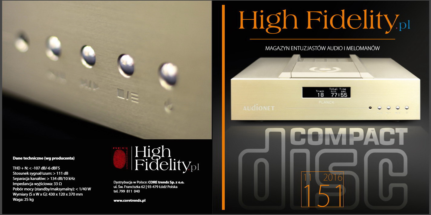 Jako wieloletni partner medialny wystawy Audio Show – teraz Audio Video Show – w czasie każdej jej edycji proponujemy kilka niecodziennych wydarzeń, mających na celu edukację i rozrywkę. W tym roku mamy dla odwiedzającym trzy rzeczy. Pierwsza to, już tradycyjnie, drukowana wersja naszego testu z listopadowej okładki. Tym razem prezentujemy wyjątkowy odtwarzacz Compact Disc, przygotowany niedawno przez niemiecką firmę Audionet model Planck. Jak się okazuje format ten może zapewnić absolutnie high-endowy dźwięk. Nawet w porównaniu z plikami wysokiej rozdzielczości pokazuje, że jeśli coś jest dopracowane i właściwie wykonane, to efekty są zadziwiające. Test otrzymaliście państwo razem z katalogiem wystawy, proszę go traktować jako pamiątkę.