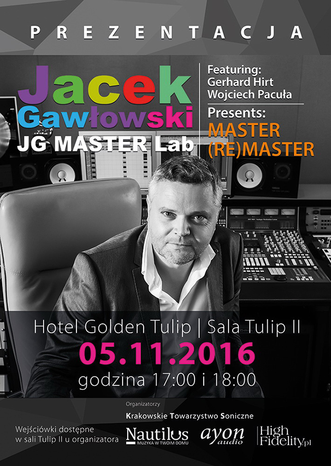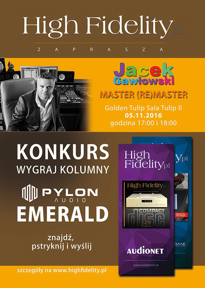 Drugie działanie to wynik naszej współpracy z najbardziej rozchwytywanym obecnie polskim masteringowcem, posiadaczem statuetki Grammy, człowiekiem, który remasteruje katalog Polish Jazz, Jackiem Gawłowskim. Będzie to spotkanie w ramach Krakowskiego Towarzystwa Sonicznego, w czasie którego Jacek opowie o kulisach swojej pracy i zaprezentuje pliki wysokiej rozdzielczości nagrań, które znamy jedynie z płyt CD. Poruszy również temat związku świata audio profesjonalnego i konsumenckiego i spróbuje odpowiedzieć na pytanie, dlaczego istnieje między nimi tak głęboki podział. Spotkanie jest możliwe dzięki firmie Ayon Audio oraz jej polskiemu dystrybutorowi, firmie Nautilus. Ze strony Ayona pomagał nam będzie Gerhard Hirt, jej właściciel, który pokaże przy okazji najnowsze produkty – odtwarzacz plików S-10 oraz odtwarzacz SACD CD-35, o którym piszemy w tym wydaniu „High Fidelity” (KTS #105). ![]()