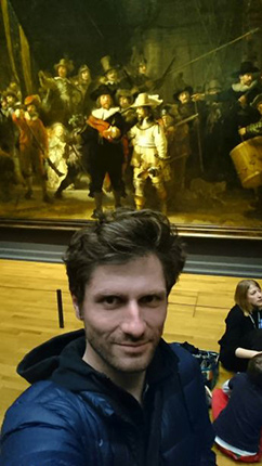 Mr Rafał Szmytka in Rijksmuseum in Amsterdam, in the background the Rembrandt's Night watch; photo: Rafał Szmytka