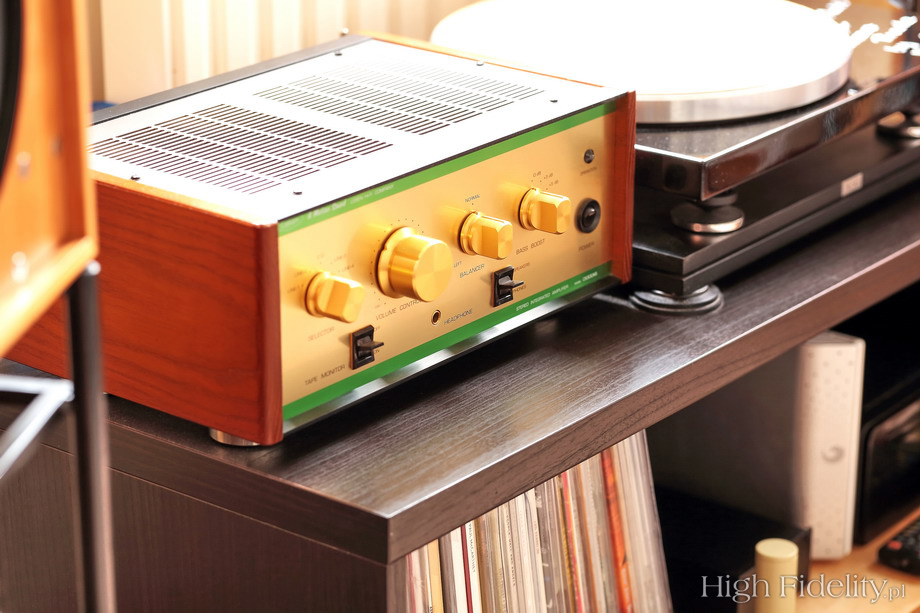 What's also important is a fact that Leben is not some huge device, one doesn't need a crane to move it around. This amp is surprisingly slick and relatively light. Light, in a very positive meaning of this word, is also the sound Leben delivers. Music is presented in a well balanced way, without trying to impress listener with some sort of “special effects”. Yes, it does sound like a tube amplifier, in a warm, nice to listen way, but it combines these qualities with a very good dynamics and the sound is also highly detailed. Leben is also a high quality headphone amplifier, that allows its user to still enjoy his favorite music while other members of the family require a bit of silence. The unit that I use is a very particular one, one of the kind actually, as it was personally made by Mr Taku Hyodo, Leben's owner, for „High Fidelity”, which is confirmed by a writing on amplifier's back.