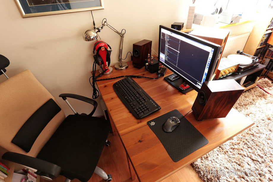 I chose this set of cables to combine a very nice, warm sound of Oyaide + KBL with amazingly detailed sound of Siltech. Power cables are plugged into KBL Reference Power Distributor, and my external HDD (that delivers data to X10) is plugged into a separate, cheap (10 PLN) power strip from Castorama. As for accessories I am a happy user of two anti-vibration platforms (one made by Troks, and the other by Waldemar Skrzypczak of Pro Audio Bono, whom I met this year during Audio Show), a set (three pieces) of Franz Audio Accessories discs under my turntable, and two racks made by a renown Swedish company IKEA. Yup, that's not a joke. IKEA makes ridiculously cheap racks and shelves that are good enough to place audio system on it. They might not improve the sound of the system, but for now, until I get something better, they will do just fine. System II I have also another system, that I need to mention – it's a desktop system. It's key element is… just my PC. Yes, I've mentioned before that I am a great fan of vinyl, but I also like to use audio files as music medium, simply because of their convenience, availability and, in some cases, also for sound quality. Original Compact Discs are ripped to files using dBpoweramp software and then played using foobar2000 software player.
