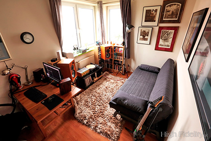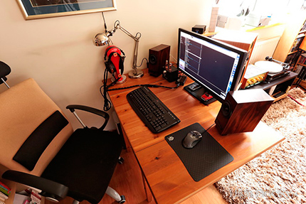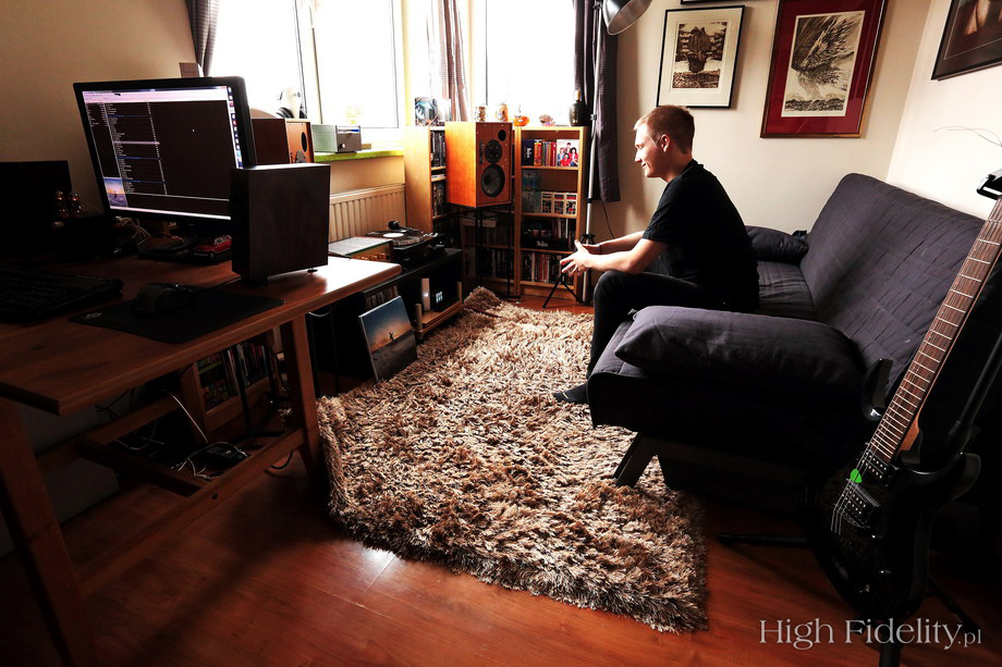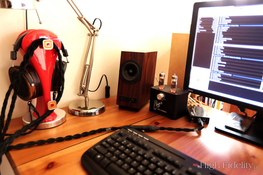 My desktop speakers are near field Studio Oslo monitors made by a Cracow manufacturer Ancient Audio. To be honest I use mostly headphones though, that allow me to listen to the music as loud as I want any time of day or night. I use flagship planar-magnetic cans of American company Audeze, LCD-3, that are driven by a tiny tube integrated amplifier Synergy Hi-Fi 6F3 with an APPJ adapter that allows me to use it as a headphone amp. This beautiful tube amplifier (I love night sessions for this magical glow) with Audeze's flagship cans sounds exactly as I like it – powerful, dynamic, rich and warm. It might not be the most natural sounding set as Audeze tend to deviate a bit from “high fidelity”, but they do it to achieve certain, absolutely wonderful result, and they do it in style. I also use much less expensive HiFiMAN HE-500 headphones, and I keep both of them on wonderful, modern Klutz Design headphone stands.