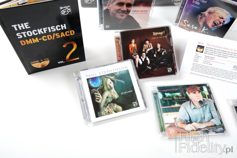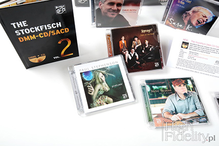 It is much more elaborate than the Vol. 1. There is a very nice 60 page booklet with pictures and step by step description of the whole process and equipment they used. That the part I missed in previous Stockfisch releases as I was always interested in the recording and mixing process by my curiosity couldn't be satisfied. I knew that for years in the recording and mastering studios they used Bowers & Wilkins 801D loudspeakers. That's a good choice – these speakers are also used in EMI's Abbey Road Studios, and also in AIR Studios. But something must have change in Pauler Acoustics, because new pictures show that B&W speakers were replaced with Prestige line Tannoy Cantenbury GR model. Günter Pauler worked on the material for this album and Percy Chan assisted him. For my comparisons I used original SACD and one CD (Sara K.) releases and also vinyl records containing tracks included in the sampler. An interesting fact: in Asia this album was released also as a classic digipack, but as a single layer SACD (no CD layer). Such releases offer better sound quality than hybrid ones, and that's why SHM-SACDs are released this way. SOUND Regardless of of technical assessment of the method used to make DMM-CD/SACD, the sound achieved this way is very interesting and surely worth familiarizing with. Comparing same tracks released on vinyl, SACD and CD with their DMM version one can easily tell, that this process of cutting copper plates changes sound characteristics. What's more direction of these changes complies with our expectations. As if distortion introduced this way to the sound had a positive effect and not a negative as would be expected from technical point of view. It's the story of tubes repeating itself. Valves also introduce distortion to the sound and yet it is the kind that makes sound more 'friendly' to man's ears. The DMM versions produce deeper, more palpable sound. And the impression is not caused by some emphasis added in the lower end during production stage - Mr Pauler when mastering material for this release obviously tried to keep original tonality. The point is that vocals and bass are more three-dimensional, they are presented closer to the listener and in a clearer way too. They all 'breathe'. Also soundstage is more impressive – wider, deeper and more organized. The same tracks even played from vinyl deliver an image more focused in the middle of the stage, and the scale is not as big. That's not how one would expect it to sound like but it does sound just as I described – tracks versions released on the DMM-CD/SACD sampler simply sound better than their “regular” counterparts on other releases including vinyl ones. Sound is more enjoyable, smoother, more liquid, and vocal are bigger in scale. And there are almost no pops&cracks, only very few hidden deep under layers of music, and background noise level is also very low. The only thing I would change is this slight emphasis in the range between 800 Hz and 2 kHz. It makes vocals sound more open but still, that's a coloration rather than true 'openness' of the sound. But that's a minor detail. As you can see there are still some elements of digital technology that can be improved, changed. Stockfisch belongs to these labels that constantly seek for way to improve their works and even if not all of their ideas actually work – like pressing vinyls using DSD signal – some, like this particular one, work great. Sound of DMM-CD/SACD is warm but also highly detailed and selective. It is surely not bright and yet particularly open. And there is this astounding bass… And the most shocking property of them all is a complete lack of pops&cracks. Sound quality: 9-10/10 Summary This pursuit, this urge to offer as 'analogue' sound of a digital medium as possible is equally admirable as it is pointless. You have to admire this pursuit because still the analogue mediums – reel-to-reel tapes and vinyl are considered to offer the best sound quality. But on the other hand not all the music is even recorded in analogue domain, a large part of all recordings are done digitally. And this number is and will be growing. So it would seem more reasonable not to try to make them sound 'analogue' but to offer high fidelity, to focus on 'natural' sound, avoiding issues of analogue recording such as noise, for example. Hence trying to make digital mediums sound 'analogue' does not have a valid point.