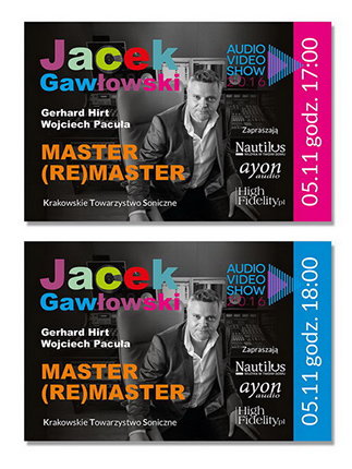 The second action is the result of our cooperation with the presently most sought after Polish mastering engineer, Grammy Award winner, the man who's been remastering a whole catalog of Polish Jazz, Jacek Gawłowski. It will be a meeting of the Krakow Sonic Society, during which Jacek will talk about the his work, present high resolution files of the recordings we know only from the CDs. He shall talk also about a relations between the world of professional audio and consumer audio and try to answer the question: why there is such a deep division between them. Credit for making this presentation possible goes to the Ayon Audio and its Polish distributor, Nautilus. Gerhard Hirt, the owner, of Ayon Audio will represent his company and will also present his latest products – a new file player and SACD player.
