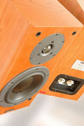 Niskie uderzenia, które jak bicie serca towarzyszą utworowi "An Architect's Dream" z płyty "Aerial" Kate Bush (EMI, 43960, 2CD) z otwartym portem były mocne i pełne, niewiarygodnie pełne, jak na tak niewielką kolumnę, jednak czasem aż za pełne. Już pierwsza sekunda z utworu "Landmark" z płyty "Tears of Joy" Antonio Forcione (Naim, NaimCD087, CD) potwierdziła, ze Focusy mają basiszcze jak młot. Daje to duży, fascynujący dźwięk. W niekorzystnej akustyce może on jednak prowadzić do wzbudzania się niektórych częstotliwości chętniej nawet niż przy kolumnach wolnostojących. Zakładamy więc zatyczki - i gotowe. Nawet jednak przed tą operacją wiadomo już, że w kolumnach fenomenalnie zintegrowano przetworniki. Kieruje to naszą uwagę na inne części pasma, w tym na górę. Wprawdzie czasy Esotara bez ferrofluidu mamy już za sobą (a szkoda), jednak nie znaczy to, że nowe opracowania można wyrzucić do kosza - co to to nie: wciąż kopułki tej firmy należą do jednych z najlepszych i prywatnie do moich ulubionych (wraz z dwoma, może trzema innymi modelami). W Focusach znajdziemy najnowsze opracowanie, model o nazwie Esotec +. Wprawdzie w literaturze podaje się, że jest to rozwinięcie przetworników z Confidence i Contour, jednak wydaje się, że to trochę upraszcza sprawę. Nie miałem możliwości bezpośredniego ich porównania, jednak dzień wcześniej słuchałem modelu C2 i - ale bez kładzenia głowy pod topór, niech to będzie hipoteza robocza - wydaje się, że w Focusach góra gra lepiej. Łączą się w niej atak i wypełnienie, masa i ulotność. Może nie jest to jeszcze poziom głośników wysokotonowych z Dynaudio Special Twenty-Five czy - tym bardziej - Sonus Faber Amati, ale jest blisko. Jedynie metalowa kopułka w Nicolo Harpii Acoustic zrobiła ostatnio tak duże wrażenie.
