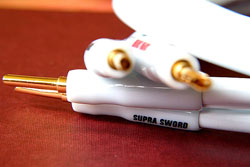 Kable szwedzkiej firmy Supra to jedna z pilniej strzeżonych tajemnic europejskiej kultury audio. Niby co jakiś czas się to tu to tam pojawia, ale jakby bez ciśnienia, bez szeroko zakrojonej kampanii reklamowej, od niechcenia. W przypadku gałęzi kablowej to rzadkość, ponieważ to w niej można zaobserwować największą aktywność PR-owców, speców od marketingu i języka reklamy. A Supra - cichutko, powoli, do przodu. Przygotowując jakiś czas temu testy kabli, a niedługo potem akcesoriów sieciowych dla "Audio" poprosiłem o kilka produktów tej firmy ze średniej półki. Chociaż mówiąc o średniej czy wyższej półce cenowej w tym przypadku natrafimy na niezrozumiały opór materiału: Szwedzi nie chcą zarabiać więcej niż to by wynikało z rachunku ekonomicznego i nawet najdroższe produkty kosztują tyle, że w katalogach innych firm wciąż znajdowałyby się w średnim przedziale cenowym. A przecież to genialne produkty. Może brak siateczek na zewnątrz, zwykły wygląd itp. powodują, że podświadomie oczekujemy może niezłych, ale całkiem zwyczajnych kabli? Jakakolwiek by była tego przyczyna, jeśli szukamy kabli do drogich systemów, koniecznie trzeba się przełamać i wziąć do ręki te niczym się nie wyróżniające, bladoniebieskie, giętkie "druty", a wtedy istnieje duże prawdopodobieństwo, że poza najdroższymi konstrukcjami innych firm nie znajdziemy niczego lepszego. Czy życie nie mogłoby być tak proste? ODSŁUCH   Szwedzkie kable grają pełnym, dźwięcznym, znakomicie poukładanym dźwiękiem. Żadnego szarpania, rozedrgania itp. Puszczając utwór "The Songs From The Hills" z płyty "Unit" Adama Makowicza (Polskie Nagrania PNCD935, Polish Jazz vol.35, CD) po zmianie z Velumów od razu na plan pierwszy weszło piano Fendera i organiczna, pełna mocy stopa perkusji. Całość miała nieco niżej ustawioną barwę, skupioną na niższej średnicy, z bardziej powściągliwą górą. W jej ramach blachy były jednak ładnie rysowane, dźwięczne i "ruchliwe", tj. z wieloma odcieniami. Ich barwa była dobrze różnicowana, chociaż wyższe składowe nie były zawsze oczywiste. Być może chodziło o to, że pierwsze skrzypce grała średnica i średni bas? W każdym razie dźwięk Supry był większy, gęstszy i bardziej namacalny niż z Veluma czy kabli Tara Labs. Wracając do płyty "Unit", tym razem do utworu "The Song From The Valleys" słychać, że góra jest nieco uśredniana i ma cieplejszą barwę niż w kablach referencyjnych. Jakoś specjalnie nawet to nie przeszkadzało, przede wszystkim dzięki dobrym barwom tego zakresu, jednak różnica pomiędzy niedrogim przecież Swordem, a np. kosztującym sporo drożej XLO UnLimited Edition była słyszalna.   A bas? Supra gra znakomicie kontrolowanym, pełnym basem. Zakres ten ma znakomitą dynamikę, która w dużym stopniu decyduje o odbiorze kabla. Takie prowadzenie niskich częstotliwości sprawiło, że głos Barb Jungr z płyty "Love Me Tender" (LINN Records, AKD 255, HDCD/SACD) z coverami Presleya, głos niesamowicie naturalny i "obecny", był nieco większy i cieplejszy niż z XLO Signature 2, miał także lepsze barwy. Mniej w nim było sybilantów, ponieważ ważniejsza była średnica, jednak to, czy jest to zaleta czy wada, będzie zależało od systemu. Tak naprawdę, taka prezentacja wydatnie zwiększyła "siłę rażenia" głosu Jungr, ponieważ piosenkarka śpiewała tylko dla nas, plastycznie wychodząc z tła, może bez ostatecznego uwolnienia się i stanięcia w dużej przestrzeni (jakkolwiek dodanej sztucznie), jednak oddającej napięcie wewnętrzne, intensywność tego, co chciała przekazać. Rezolucja dźwięku we wszystkich zakresach, oprócz najwyższej góry, jest dobra, miejscami, jak w basie - bardzo dobra, jednak można powiedzieć, że Supra dynamiką basu i barwą średnicy stoi. Głos Jungr był bowiem nieco gorzej wydobyty (jak wspominałem) z tła niż przy Velumie, a tylna "ściana" kreowana przez pogłos nie była opisywana. Pogłos był tylko pogłosem, a nie kreował wiarygodnej przestrzeni. Żaden to specjalny zarzut, bo kabel do najdroższych nie należy, trzeba sobie jednak zdawać sprawę, że da się lepiej - za większe pieniądze - ale się da. Ważne było jednak to, że wokal nie był wtopiony, nie mieszał się z tłem, a był wyraźnie wyodrębniany, podobnie zresztą jak inne instrumenty.   Jak wspomniałem, z kablem Supry możemy być pewni, że niskie częstotliwości zostaną oddane z rozmachem i potęgą. Dźwięk rozpoczynający utwór "Wooden Heart" z płyty Jungr, imitujący (a może był on zresztą nagrany z "natury" - nie jestem pewien) mechanizm pozytywki miał podkreślone niższe dźwięki, które już dawno powinny być niesłyszalne. Warto więc uważać na system - w neutralnym i takim z mocniejszym basem może być po prostu zbyt dużo tego dobrego. Trochę się czepiam, ale chciałbym być dobrze zrozumiany: po pierwsze - Sword jest flagowcem, więc nie ma odpuszczania, a po drugie - porównywany był z najlepszymi znanymi mi kablami. Też bez taryfy ulgowej. Piszę to, bo w porównaniu z kablami ze swojej grupy cenowej Supra jest fantastyczna. Wciąż można by sobie życzyć nieco mocniejszej, dźwięczniejszej góry, jednak coś za coś. W zamian dostajemy piękną barwę, dynamiką i dobrą rozdzielczość. Słabszymi punktami jest wybudowanie wyższej góry oraz stereofonia - dobra, ale nie wybitna. Jak w życiu - trzeba wybrać, czego szukamy. Bez względu jednak na to, co zdecydujemy, trzeba powiedzieć, że Szwedzi za nieduże pieniądze przygotowali wyśmienity kabel. A przecież wcale na to nie wyglądał... BUDOWA   Kable Supra SWORD przybywają do nas w ładnej, drewnianej, mahoniowej walizeczce ze złotymi napisami. To jednak jedyny znak, że mamy do czynienia z flagowym produktem. Sam kabel niczym się nie wyróżnia, ponieważ bladoniebieska, giętka powłoka, przynajmniej tak "na oko" predestynuje go d