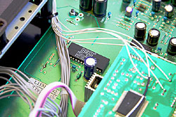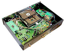 Pośrodku wnętrza widoczny jest napęd, który choć ma naklejone logo Perreaux niewątpliwie pochodzi od Sony. Być może jednak w Nowej Zelandii zostało zmodyfikowane oprogramowanie, tak jak to robią Cambridge Audio i Rotel, korzystające z tych samych napędów. Sterowanie napędem wyciągnięto spod niego i umocowano z boku, przy ściance. Tuż pod nim prawdziwa niespodzianka - dekoder HDCD, z cyfrowymi filtrami PMD100, czyli najlepszy, jaki chyba był (nowe, PMD200 są wykonywane w postaci softwaru, ładowanego do kości DSP, także z odtwarzaczach DVD i amplitunerach AV). Po tej dużej kości mamy także już raczej niespotykany przetwornik Burr-Browna PCM69AP, 1-bitowy typu Beatstream o rozdzielczości będącej ekwiwalentem 18 bitów. Wyjście zbudowane jest w oparciu o układy scalone Burr-Browna OPA2604, po jednym na kanał. Oporniki są metalizowane, precyzyjne, a kondensatory, oprócz bipolarnych, są Philipsa (teraz BC). Widać, że odtwarzacz zaprojektowano jakiś czas temu i logicznie korzystano z dostępnych wówczas elementów - wcale nie gorszych od wielu nowych... Wyjście jest na zakręcanych gniazdach RCA, które umieszczono - przynajmniej tak mi się wydaje - całkowicie bez sensu, ponieważ przy sekcji cyfrowej. Biegną do nich dość długie kabelki. Za układami wyjściowymi analogowymi umieszczono zaś... wyjście cyfrowe, do którego biegną kabelki z miejsca tuż za wyjściem analogowym. W ogóle kabli jest sporo, ponieważ tak jak w odtwarzaczu C.E.C.-a CD3300 od płytki sterującej wieloma kabelkami biegniemy na tył urządzenia, gdzie jest wyjątkowo rozbudowany zasilacz i elementy logiki. Obok nich umieszczono niewielki transformator. Część cyfrowa ma osobne uzwojenia i stabilizację, osobne ma logika i sekcja audio, z dwoma sporymi kondensatorami Rubycon. Kiedy bliżej przypatrzymy się kondensatorom w układzie audio okaże się, że także one są od Rubycona i są to drogie, bardzo cenione Black Gate'y. Wszędzie. Warto też zauważyć, że oporniki w części audio kupiono u Rodersteina.