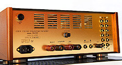 A urządzenie swoim wyglądem przeszło moje wszelkie oczekiwania. Zdjęcia nie oddają nawet w małej części jego powabu i czaru. Niewielkie, wysokość płyty CD, szerokość - dwie płyty CD, idealnie wykonane, wszystko ma na swoim miejscu i każdy element został w nim dziesięć razy przemyślany, wypróbowany i zaakceptowany. Całość ma specjalny smak i szyk, jaki mają tylko japońskie, prawdziwie japońskie urządzenia, pomimo że przedni panel złoci się i mieni. Ponieważ jednak z boku są drewniane panele, a złoto przełamuje zieleń, zupełnie to nie przeszkadza, a wręcz poprawia nasze samopoczucie. A będąc przy złocie, trzeba powiedzieć, że coś takiego w tym kolorze jest, że Japończycy często i chętnie go stosują w urządzeniach audio, żeby wspomnieć chociażby Accuphase'a, Luxmana, STAX-a, Marantza i inne, wykończone na "szampańsko" Denony. Poza tymi konotacjami, następna wiąże się z inną legendą amerykańskiego hi-endu, wspomnianą firmą Marantz. Celowo mówię o "amerykańskiej", choć firma jest japońska (jak mówił Ken Ishiwata w Berlinie w czasie wystawy IFA 2006, z której właśnie wróciłem, okazuje się, że koncern D&M swoją siedzibę ma teraz w Japonii, a nie w Hong-Kongu), ponieważ mowa o designie, który charakteryzował firmy produkowane za czasów jej założyciela, Saula Marantza i później pod zarządem Intersope, kiedy nad marką Marantz powiewała jeszcze gwiaździsty sztandar. Ponieważ od tamtych czasów minęło już kilkadziesiąt lat, można powiedzieć, że projekt plastyczny na włos się nie zestarzał, a nawet, że dzięki kilku zmianom, został przez Lebena odświeżony.   CS-300 należy do najtańszych urządzeń Lebena i chociaż cena ok. 10 000 zł, jaką trzeba zapłacić za wzmacniacz tak nieduży, oparty o tak "nieaudiofilskie" lampy jak EL84 wydaje się wysoka, to japońskie firmy przez długi czas od wprowadzenia go do sprzedaży nie mogły przebaczyć panu Hyodo tego, że tak dramatycznie zaniża ceny swoich urządzeń, kiedy mógłby wziąć za nie dwa, trzy, a nawet cztery razy więcej, a i tak by się dobrze sprzedawały. Wzmacniacze Lebena nie posiadają pilotów, wyposażone są jednak w wyjście do nagrywania, wyjście słuchawkowe z selektorem pozwalającym wyciszyć albo kolumny, albo słuchawki, balans kanałów oraz tzw. "booster", podbijający bas o 3 lub 6 dB, przydający się przede wszystkim przy kolumnach szerokopasmowych, gdzie basu zawsze brakuje. Lampy stosowane w danym modelu zawsze zależą od zamawiającego. Jeśli jednak nie jest znany odbiorca w CS-300 stosuje się w końcówce markę Sovtek (pentody EL84M), a w driverze i przedwzmacniaczu amerykańskie 5757 General Electric - "wypasioną" wersję podwójnej triody małej mocy 12AX7A. Dodatkową pomocą jest selektor impedancji na tylnej ściance: 4-6-8 Ω, pozwalający uniknąć wielu dodatkowych gniazd głośnikowych i ułatwiający wypróbowanie każdego z położeń. ODSŁUCH Wzmacniacz Lebena kosztuje w Europie ok. 2250 Euro, a więc mniej-więcej tyle samo co mój Avantgarde Acoustic Model 5 i jest przy tym o połowę słabszy mocowo, ponieważ po naprężeniu się oferuje 2 x 12 W w klasie A push-pull. Od razu pierwsze porównania pokazały, że mamy do czynienia z czymś szczególnym. Krótki odsłuch z TRI TRV-300SE (test TUTAJ) potwierdził, że ogólnie, Leben jest lepszy i chociaż nie zachowuje tej unikalnej spójności harmonicznej na bardzo niskich poziomach, to jednak oferuje większą rezolucję i dynamikę. Ale, ostatecznie, TRI jest o 4000 zł tańszy i czaruje innym zestawem cech. Głównym punktem odniesienia do 10 000 zł pozostał więc Model 5. Po przejściu z niemieckiej maszyny na japońską słychać, że dźwięk w tej ostatniej jest nieco większy i podawany jest nieco bliżej. Rysowanie naturalnych rozmiarów urządzeń, namacalnych w swojej głębi i poczuciu swego rodzaju "zgodności" wszystkich podzakresów było w "300" fenomenalne. Jednak dopiero odsłuch po tygodniu grania obudził bestię, najwyraźniej urządzenie było funkiel-nówka i musiało pograć. CS-300 potrafi bowiem zagrać niesamowicie dynamicznym dźwiękiem o pełnym spektrum - od dołu do najwyższej góry. Najniższy dół jest nieco miększy niż w Modelu 5, jednak ma tę miękkość wkalkulowaną w cały dźwięk, nie dałoby się pokazać tak rozbudowanej harmonicznie średnicy bez cienia twardości i zaraz obok szybki, krótki bas. Takie rzeczy dzieją się dopiero, kiedy zapłacimy za wzmacniacz 100 000 zł. Najtrudniejsze dla urządzeń są zwykle utwory muzyki klasycznej, bo nie dość, że wymagają bardzo dobrej mikrodynamiki, to jeszcze dynamika w skali makro musi być równie duża. No i - równowaga tonalna. Takim bardzo wymagającym nagraniem jest "Mandala Symphony" japońskiego kompozytora Toshiro Mayuzumi (Naxos 8.557093, CD), genialnie zarejestrowana i bardzo dobrze zagrana. Od razu słychać było bardzo dobrą rozdzielczość dźwięku, ponieważ instrumenty nie zlewały się w duże plamy, a raczej w ruchome i zwinne grupy grające w danym momencie razem. Coś jest w takich małych urządzeniach z wielkim sercem, ponieważ potrafią one przekazać emocje bez sugerowania, że mamy do czynienia z mechaniką.   W muzyce elektronicznej, nawet tak mocnej jak z płyty "Violator" Depeche Mode (Mute, DMCD7/584332, Collectors Edition, SACD/CD/DVD-A) dynamika jest znacznie, znacznie gorsza, jednak tutaj z kolei o odbiorze utworów decyduje motoryka i to, jak urządzenie radzi sobie z przesterowaniem cyfrowym i błędami realizatorów. Trzeba powiedzieć, że Leben nie stawia się przed muzyką. Błędy realizacyjne, jak zbyt cienki i ostry głos Gahana, czy nie do końca homogeniczne pogłosy zostały pokazane wyraźnie, jednak słychać było, że urządzenie stara się (wiem, wiem, że nie powinno się antropomorfizować przedmiotu badania, jednak nie udawajmy, że nie jesteśmy z nim emocjonalnie związani - to utop