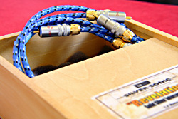 Nazwa amerykańskich kabli to nazwa "mówiąca". W literaturze oznacza to, że określa jakąś cechę lub zestaw cech charakterystycznych dla znaczonego, czyli elementu, który ją nosi. W tym przypadku chodzi o - no, kto zgadnie? Oczywiście o srebro. Część przewodów wykonywanych jest z czystego srebra (jak Revelation), a część ze srebrzonej miedzi (jak Q-10). Revelation jest swego rodzaju "wybrykiem" firmy, ponieważ na tle niedrogich "pobratymców" jest niemal przeraźliwie drogi. To oczywiście rzecz względna, ponieważ część firm kablarskich od takiego poziomu rozpoczyna swój cennik, jednak od tańszego w katalogu kabla Air Matrix dzieli go ponad 600 zł. Kabel został wykonany z indywidualnie izolowanych teflonową taśmą i powietrzem srebrnych drucików i został osłonięty plecionką z materiału niemal identyczną z tymi, jakie stosuje Audioquest czy rodzima firma Argentum, a który przypomina liny wspinaczkowe. Zakończenia, zakręcane RCA, wykonuje firma samodzielnie (a przynajmniej tak deklaruje). Kabelek przychodzi w ładnym, drewnianym pudełeczku. Q-10 to kabel wykonany z czterech wiązek drucików z grubo srebrzonej miedzi OFC - dwa są nieco cieńsze, a dwa grubsze. Przewodniki pokryte są czystym Teflonem (PTFE). 3-m odcinek dostarczony do testu został połączony do pracy w bi-wiringu, choć nic nie stoi na przeszkodzie, aby go używać w klasycznej, pojedynczej konfiguracji. Jest dość giętki i niczym z zewnątrz się nie wyróżnia.