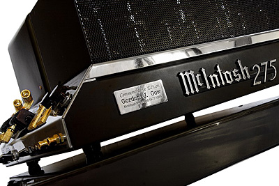 BUDOWA MC275 Commemorative Edition firmy McIntosh (McIntosh Laboratory Inc.) jest wzmacniaczem mocy, choć przy wejściach RCA posiada regulację czułości. Stąd, przez niektórych, traktowany jest jak coś więcej niż tylko końcówka. Ja również w pierwszej chwili optowałem za tą opcją, co znalazło wyraz w opisie urządzenia w ulotce HFOL, którą można było otrzymać podczas tegorocznego Audio Show. Po spędzeniu z Makiem dłuższego czasu, muszę chyba się pokajać i przyznać, że się myliłem: nie ma wątpliwości, że MC275 jest końcówką mocy. Przede wszystkim wejścia, na których najlepiej pracuje, a więc XLR nie mają regulacji siły głosu, a po drugie, zakres regulacji jest zbyt ograniczony, aby zapewnić bezproblemową współpracę ze wszystkimi typami kolumn i źródeł. Urządzenie zbudowane jest w sposób, do którego zdążyliśmy się przyzwyczaić i który uważamy za "naturalny" dla lampowców. Trzeba więc sobie uświadomić, że projekt pochodzi z lat 60. i rzeczywiście jest to protoplasta większości obecnie dostępnych projektów plastycznych tego typu urządzeń. Z kilkoma wszakże wyjątkami. Przede wszystkim, wzmacniacz jest obrócony "bokiem", tj. dłuższa krawędź jest z przodu, nie z boku. To na niej umieszczono stylizowane, pisane gotykiem logo wzmacniacza oraz - dodatkowo - tabliczkę z dedykacją dla Gordona J. Gowa. Ta część jest malowana na czarno i w następnych wcieleniach wymieniono ją na polerowaną stal. Wejścia i wyjścia są nietypowo, bo z boku. Mamy tutaj wejścia RCA, złocone, wraz regulacją czułości w zakresie od 1 V, z zaznaczoną pozycją 2,5 V. Obok są złocone (w całości) wejścia XLR, jednak nie od Neutrika, najpewniej od Amphenola, które to wejścia zbyt solidnie nie wyglądają. Pod nimi, na prostopadłej do podłoża części widać dwa przełączniki - przełączanie między wejściami oraz zmianę trybu pracy ze stereo na mono. Dalej umieszczono, już całkowicie zapomniane, w dawniejszych czasach jednak standardowe, śrubowe łącza głośnikowe, z odczepami na 4, 8 i 16 Omów. Trzeba więc używać albo wąskich widełek, albo obranych, gołych kabli. Pod spodem mamy wyłącznik sieciowy, gniazdo sieciowe typu amerykańskiego oraz, w samym roku nieodłączalny, dość gruby kabel sieciowy.