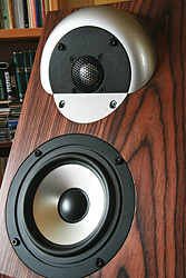Model Dobermann (New) to wolnostojąca kolumna firmy Harpia Acoustics. To potężna, przysadzista konstrukcja o charakterystycznej bryle, która służy realizacji wyrównania czasowego wszystkich głośników. Najbardziej cofnięta jest metalowa kopułka SEAS-a, ulokowana w specjalnie przygotowanym, bardzo solidnym elemencie, toczonym i frezowanym z jednego kawałka aluminium. Niżej jest umieszczony pod kątem metalowy głośnik średniotonowy, pochodzący od Visatona, a jeszcze niżej potężny, aluminiowy głośnik basowy SEAS-a. Z tyłu widać dwa otwory bas-refleksu oraz potężną, metalową płytę z zaciskami głośnikowymi. To na niej znajdziemy najdziwniejszy element tej konstrukcji: radiator, przez który wielu odwiedzających mnie ludzi sądziło, że ma do czynienia z kolumnami półaktywnymi. Tak naprawdę, radiator służy do chłodzenia opornika znajdującego się w torze głośnika wysokotonowego, który w normalnych warunkach bardzo się nagrzewa i tym samym zmienia swoją rezystancję. Zaciski głośnikowe są dwa , są złocone. Takie same używane są przez Rotela, Edgara itp. I choć do ekskluzywnych konektorów nie należą, to są całkiem przyzwoite. Zwrotnica, jak już wspomniałem, jest wyjątkowo rozbudowana. Przegląd zastosowanych, bardzo drogich i wysmakowanych komponentów można znaleźć na stronie producenta, w dziale poświęconym opisowi teorii Time Coherent. Są to: cewka toroidalna w torze basowym, cewka taśmowa w torze średniotonowym, kondensator cynowy SCR w torze wysokotonowym, rezystor Mills w torze wysokotonowym, kondensatory polipropylenowe w układzie linearyzacji impedancji w torze niskotonowym, przewody taśmowe w torze nisko-średniotonowym, przewody Kimber TC w torze wysokotonowym, posrebrzane ścieżki w płytce średnio-wysokotonowej. Cała zwrotnica została umieszczona w wydzielonej komorze. Elementy są naprawdę znakomite – kondensatory polipropylenowe są większe od szklanki, cewki od największej „Tyrolskiej”. Całość wygląda tak, jak najlepsze konstrukcje, jakie widziałem w życiu. Obudowę wykonano bardzo starannie, z bardzo grubych płyt MDF, wzmocniono wewnętrznymi żebrowaniami, a ścianki wyłożono matami bitumicznymi oraz kształtkami z pianki poliuretanowej. Kolumny stoją na nóżkach wykonanych w formie metalowych płaskowników, do których wkręca się kolce. I muszę powiedzieć, że to jedyny element, który w żaden sposób mi nie pasuje do tej przemyślanej i solidnej konstrukcji. Można to jednak zmienić samemu, po zakupie – i tak oszczędzamy kilkadziesiąt tysięcy, kupując Dobermany, a nie którąś z zagranicznych konstrukcji na zbliżonym poziomie jakościowym…