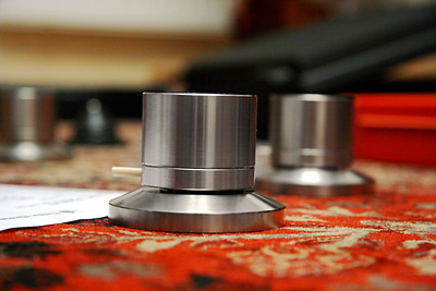 Pięćdziesiąte pierwsze spotkanie KTS miało miejsce bardzo krótko po pięćdziesiątym, jednak w tym czasie kilka rzeczy się zmieniło. Przede wszystkim część uczestników poprzedniego badania poczuło, że bez berylowych wtyczek nie mogą żyć. Idąc dalej, stwierdziliśmy potrzebę wymiany gniazdek sieciowych w ścianie na dedykowane firm Oyaide lub Furutecha, głosując w ten sposób swoimi portfelami (kontami). Z tego co wiem, nie jesteśmy osamotnieni. Wtyczki sieciowe są super egzotycznymi elementami toru, jednak izolatory, o których chciałbym tym razem powiedzieć, a właściwie podstawki pod sprzęt (to tak naprawdę izolatory mechaniczne), też nie są centralnym punktem audiofilskiej uwagi. Mając za sobą wtyczki, podstawki były dla nas jednak jak piwo na śniadanie – bezproblemowe. Odsłuch przeprowadzony został w tym samym systemie, co wcześniej, nie będę go więc ponownie opisywał. Naszym celem było sprawdzenie ‘czy?’, jeśli tak, to ‘w jakiej mierze?’ i ‘jak?” odseparowanie komponentów audio od płaszczyzny, na której stoją wpływa na dźwięk. Tym razem zajęliśmy się najbardziej oczywistym kandydatem na takie badanie, a mianowicie transportem CD. W wzięło w nim udział pięć kompletów, porównywanych ze standardowymi stożkami Lektorów firmy Monacor. Trzy z nich, Finite Elemente, dostarczył jej dystrybutor firma Audio System.
