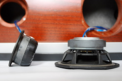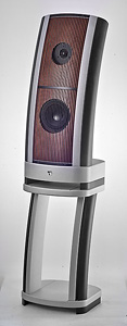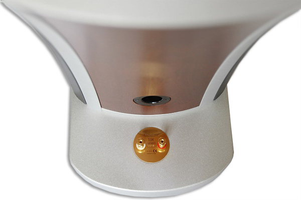 Jak wspomniałem, kolumny Tounda mają bowiem wyraźnego odbiorcę. Nie da się z tego równania wyłączyć designu i chyba nawet nie wolno, ponieważ minęlibyśmy się wówczas z sednem tego, czym te kolumny są. Nie ma bowiem, a przynajmniej ja nie znam, ani nigdy o czymś takim nie słyszałem, kolumn, które by tak dobrze wyglądały i tak dobrze grały. Wszystkie konstrukcje nastawione na projekt plastyczny są przy nich jak żart. A to chyba datego, że w tym przypadku projektanci wyszli od dźwięku i dotarli do formy, a nie na odwrót. Toundy po prostu znakomicie brzmią, a ograniczane są (w takiej kolejności) wielkością obudowy, rozmiarami głośnika nisko-średniotonowego oraz elementami projektu plastycznego (chodzi o wpuszczenie głośników w głąb przedniej ścianki i metalową maskownicę). Z tego punktu widzenia dostajemy kolumny, które mogą stanąć w pomieszczeniach, w których, ze względów dekoracyjnych, nigdy nie stanęłyby inne konstrukcje. A to oznacza dostarczenie wysokiej klasy dźwięku ludziom, którzy być może pozostaliby na pseudo-kolumnach nastawionych na design. Z Toundami nie muszą rezygnować ani z profesjonalnego wzornictwa, ani z dobrego dźwięku. Z drugiej strony za te pieniądze dostaniemy kolumny z niższym basem, lepiej wyrównanym balansem tonalnym i lepszą rozdzielczością. A jednak zapewne nie będą one tak wciągające. Jedyną konstrukcją, która w obydwu punktach może tutaj spokojnie zawalczyć to Guarnieri Memento Sonus fabera. A jednak Tound prezentuje jeszcze bardziej designerski sznyt. Decyzja należy oczywiście do Państwa. Ja spędziłem z tymi kolumnami przyjemnie czas dla nich przeznaczony i nie miałem potrzeby zmiany ich na coś innego. A moja żona z wyrzutem na mnie spojrzała, kiedy powiedziałem, że muszę je spakować. Wcześniej tylko dwa razy tak na mnie patrzyła: kiedy oddawałem kolumny Eryk S. Concept Ketsus oraz kolumny Acuhorn... BUDOWA   Kolumny T.04 włoskiej firmy Tound nie wyglądają jak zwykłe kolumny. Kiedy jednak spojrzymy na nie od strony technicznej, okaże się, że to po prostu dwudrożne kolumny podstawkowe wentylowane bas refleksem. Oparte zostały o miękką kopułkę o średnicy 28 mm firmy Morel MDT30-S z puszką wytłumiającą z tyłu oraz o głośnik nisko-średniotonowy z papierową, niepowlekaną membraną o średnicy 130 mm (najprawdopodobniej Perless). O obydwu czytamy, że są projektowane w Toundzie, a chodzi najpewniej o to, że są to modyfikowane głośniki ze standardowej oferty wspomnianych firm. Przetworniki są umieszczone dość daleko od siebie na wygiętej ściance przedniej. Ponieważ są skierowane osiami w stronę słuchacza, tj. pod kątem 90º względem podstawy, a front jest mocno wygięty, są dość mocno zgłębione w grubej na 5 cm ściance przedniej. Głośnik wysokotonowy, bo o niego tu chodzi przede wszystkim, ma więc od dołu dość długi „tunel” z drewna. Wygięcie jest elementem wzorniczym, ale służy przede wszystkim wyrównaniu mechanicznemu głośników tak, aby ich centra akustyczne znajdowały się na tej samej płaszczyźnie. Przed głośnikami mamy coś w rodzaju „strun”, rzecz znana z kolumn Sonus fabera, z tym, że w Sonusie „struny” są miękkie, a tutaj są metalowe. Głośnik ma bardzo płaską obudowę, przez co niezbyt pojemność. Aby był stabilny, ma szeroką i głęboką podstawę, na której, na złoconej płytce metalowej, ulokowano pojedyncze zaciski głośnikowe firmy WBT (złocony model 0780 z serii Signature).