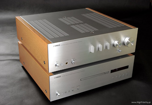 System Yamahy jest fantastycznie wykonany i wspaniale wyposażony. W tym przedziale cenowym to bardzo dobry wybór. Trzeba tylko pamiętać o swoich preferencjach i starannie dobrać kolumny. Nie powinny być zbyt dobitne, a ich górna średnica nie powinna się za bardzo rzucać w uszy. Moje Dobermanny mają dość aktywną tę część pasma i z Yamahą nie za bardzo się polubiły. Znacznie lepiej było jednak z monitorami Enigma Mini firmy Sound&Line, a przede wszystkim z testowanymi jakiś czas temu kolumnami Monitor Audio Gold Series GS10. Z tymi ostatnimi Yamaha wzniosła się naprawdę wysoko, dając świetnie nasycony dźwięk bez agresji. Wzmacniacz, jak na ten przedział cenowy, jest wybitny pod względem jakości budowy i wykonania. Jego dźwięk jakoś się nie wyróżnia, a stanowi po prostu dobrą podstawę dla odtwarzacza CD-S1000. Ten ostatni jest jednak wyjątkowy. Słuchałem go s systemem Audiomatusa PP03 + AM500 i z lampą JAG 300B (testy w tym samym numerze „High Fidelity”), gdzie odtwarzacz zabrzmiał porywająco. Jak wspomniałem, spokojnie można zainwestować w cały system Yamahy, należy tylko dobrze dobrać kolumny. Da nam to spójność stylistyczną i możliwość operowania za pomocą jednego pilota. Jeśli się jednak nie boimy wyzwań, wówczas wypróbujmy CD-S1000 ze wzmacniaczem JAG 300B i kolumnami ART Lodspeakers Stiletto 6 lub ze wzmacniaczem Audiomatus PP03 + AM500 i kolumnami A.D.A.M. HM2, albo (jeszcze lepiej) z Enigmami Mini Sound&Line. Niezależnie od tego, co zdecydujemy, dostajemy do ręki wszechstronne urządzenia, nie bez wad, ale i z zaletami, urządzenia mogące grać albo razem, albo w innych systemach. A taka sztuka udaje się nielicznym. BUDOWA Jak wspomniałem, obydwa urządzenia zaskakują fantastyczną budową Cała obudowa wykonana została z blach aluminiowych oraz stalowych i skręcana jest tak, jak w urządzeniach Accuphase’a, tj. górna ścianka przykręcana jest zarówno pośrodku, od góry, jak i z boków, pod odkręcanymi, drewnianymi panelami. Dodatkowo górne płyty są wytłumiane matami bitumicznymi. Fronty to płaskie płyty aluminium. W odtwarzaczu po lewej stronie mamy wąziutką szufladę, która otwiera się niedostrzegalnie, z lekkim „westchnieniem”, którym mogą się pochwalić tylko nieliczne urządzenia hi-end. Po jego prawej stornie mamy niewielki, niezbyt czytelny wyświetlacz dot-matrix o bladoniebieskim kolorze, na którym nie uświadczymy żadnych informacji CD-Text, ani – co bardziej dziwi – SACD-Text, obowiązkowych na każdej płycie tego typu. Pod wyświetlaczem umieszczono kilka guzików o różnym kształcie, sterujących napędem, a pod szufladą dwa guziki – jeden zmieniający warstwę hybrydowej płyty SACD, a drugi (‘pure audio’) wyłączający niepotrzebne obwody, jak wyjście cyfrowe i wyświetlacz.