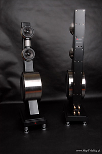 To nie są kolumny, jak inne. Wiele widziałem, jednak u mnie w domu konstrukcje o tak wyrazistym, a przy tym tak dobrym projekcie plastycznym bywają niezmiernie rzadko. Oto bowiem mamy do czynienia z prawdziwym rzeźbiarskim designem, który w dodatku jest „dodatkiem” do dźwięku. Nie ma więc mowy o epatowaniu rozwiązaniami plastycznymi, które mają osłodzić słaby dźwięk. To mianowicie ten przypadek, w którym form follows function, a więc taki, gdzie wygląd wynika wprost z zastosowanych rozwiązań i założeń ideowych. Model Reference3.1 jest najdroższym produktem w ofercie tego producenta i składa się tak naprawdę z dwóch sekcji: niskośredniowysokotonowej oraz zintegrowanego z nią subwoofera. Z rozmysłem piszę o przenoszeniu niskich częstotliwości przez tę pierwszą, ponieważ jest ona dostępna także jako samodzielny głośnik, pełniąc rolę przeznaczoną dla mini-monitora. Jeśliby się przyjrzeć temu bliżej, to okaże się, że punkt podziału zwrotnicy dzielącej obydwa segmenty przypada na 150 Hz, a więc znacznie wyżej niż w klasycznych monitorach. Sięgnijmy jednak jeszcze głębiej: zobaczymy wówczas, że sekcja odtwarzająca wyższą część pasma nie jest od dołu w ogóle filtrowana i schodzi niżej, niż by na to wskazywał punkt odcięcia głośnika niskotonowego. Ten ostatni został wyposażony w prosty filtr 1. rzędu. Brak zwrotnicy lub jej szczątkowa obecność w głośniku wysokotonowym, tak charakterystyczna dla takich marek, jak BC Acoustics i Reference 3A (test Da Capo i TUTAJ), jest wyzwaniem, któremu niewiele firm stawia czoła. Jednak Anthony Gallo Acoustics się z nim zmierzyła. Takie podejście niemal zawsze wymaga przygotowywania własnych przetworników – w swojej fabryce lub wykonywanych na zlecenie. Tak jest i tutaj – ponieważ w wyższym module nie ma zwrotnicy w ogóle, a opadanie przenoszenia i podział wymuszono jedynie parametrami przetworników oraz obudową, niskośredniotonowe głośniki z membraną z plecionki włókna wstęgowego oraz planarny przetwornik Kynar CDT II są wykonywane na zamówienie. Te pierwsze zamontowano w okrągłych, odlewnych ze stali nierdzewnej, zamkniętych obudowach, w których udało się wyeliminować zupełnie fale stojące – nie ma tam przecież żadnych równoległych powierzchni. Podobnie jest w okrągłej obudowie (plaster walca) przetwornika niskotonowego. Wszystkie wymienione przetworniki zostały do obudów przykręcone inaczej niż zazwyczaj – nie na obwodzie kosza z przodu, a z tyłu, za pomocą pojedynczych śrub, przyciskających krawędzie kosza do frontów obudów. Daje to – tak czytamy w materiałach firmowych – lepsze rozłożenie naprężeń, ale też eliminuje łby śrub w pobliżu głośników średniotonowego i wysokotonowego. Przy basie nie ma to większego znaczenia, jednak przy dwóch pierwszych – jak najbardziej.   Wspomniane przetworniki są jednak – mimo wszystko – dość standardowe: to membrany w formie tłoka, z cewką pośrodku. Głośnik wysokotonowy Kynar CDT II jest jednak kompletnie inny niż klasyczne kopułki, a także przetworniki A.R.T. (Accelerated Ribbon Technology) dr. Heila, stosowane np. przez ADAM-a (test monitorów HM2 TUTAJ). Jest to planarny przetwornik z napyloną warstwą srebra, pełniącą rolę cewki, z umieszczonymi z tyłu neodymowymi magnesami. Jego powierzchnia nie jest płaska, a ma formę wycinka walca, promieniującego w płaszczyźnie poziomej 300º. Dodajmy jeszcze, że głośnik niskotonowy posiada obudowę zamkniętą i można do niego dokupić dodatkowy wzmacniacz, sterujący wówczas drugą cewką nawiniętą razem na karkasie z cewką podstawową. Służą do tego dodatkowe zaciski głośnikowe dla basu. Nie można jednak podłączyć do nich zwykłego wzmacniacza, ponieważ ten musi być poprzedzony filtrem dolnoprzepustowym – druga cewka nie jest filtrowana i głośnik zasilony bezpośrednio przenosiłby pasmo do 2000 Hz, zaburzając strojenie kolumny. Firma posiada taki wzmacniacz, z wbudowanymi wszelakimi regulacjami – m.in. EQ, fazy, poziomu siły głosu i punktu odcięcia, o nazwie Reference SA (Subwoofer Amplifier), oddający 240 W do 8 Ω. Dzięki niemu pasmo przenoszenia kolumn ma zejść aż do 22 Hz czyniąc z nich kolumny pełnozakresowe. Płyty użyte w teście: ODSŁUCH   Nie sądzę, żeby komukolwiek udało się te kolumny zmusić do agresywnego grania, ani czy ktokolwiek będzie w stanie przyłapać je na „niefrasobliwości” czy braku opanowania. Po ich rozpakowaniu nie od razu wiadomo jednak, czego się spodziewać. Kolumny testowane m.in. w „Playboyu”, wyglądające bardziej, jak drzewko bonsai niż produkt użytkowy, kierują oczekiwania, przewidywania itp. w kierunku produktów typu life-style. Na szczęście nie trzeba być specjalnie osłuchanym, żeby dojść do wniosku, że to założenie błędne już u podstaw. Słucha się ich tak, jak inne audiofilskie produkty, z ich wadami i zaletami, ale nic w ich brzmieniu nie wskazuje na to, że chodzi jedynie o wygląd. Po jakimś czasie dochodzimy jednak do wniosku, że rzeczywiście, ich odbiorcami bez problemu mogą być osoby na co dzień z audio, a audiofilizmem w szczególności, nie mające nic wspólnego. Bo, jak mówię, to konstrukcje o niebywale gładkim, pozbawionym wszelkich ostrości, drażniących naleciałości, dźwięku. Wyższa część pasma jest wyraźnie stonowana i wycofana, co słychać było już przy pierwszej płycie, jaką odsłuchałem, Only The Lonely Franka Sinatry, ale i na odegranej zaraz potem Grace Kathleen Battle w nowej wersji Blu-spec CD. Szczególnie ciekawy byłem, jak kolumny zabrzmią z monofonicznym materiałem z płyty Sinatry, ponieważ w takim przypadku od razu wiadomo, co się dzieje z pasmem i sceną. Reference’y 3.1 pokazały głos w duży, pełny sposób. Nie ma z nimi mowy o zamykaniu dźwięku w jednym punkcie. Co ciekawe, w dość zbliżony tonalnie sposób kons