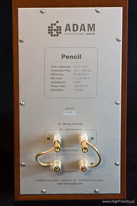 A.D.A.M. Professional Audio, Berlin, Germany. Taki napis odnajdziemy na metalowej płytce zamocowanej na tylnej ściance kolumn. I jest to jak najbardziej prawda, bowiem firma A.D.A.M., rozpoczęła przygodę z audio od rynku profesjonalnego. Nawet akronim tworzący nazwę firmy przywołuje skojarzenia z rynkiem profesjonalnym – Advanced Dynamic Audio Monitor. Powstanie firmy poprzedziło wiele lat badań – np. przy współpracy z dr Oskarem Heilem powstał głośnik ART (Advanced Ribbon Technology), znak rozpoznawczy wszystkich kolumn A.D.A.M.-a. Obecnie produkty tej firmy stosowane są w wielu studiach na świecie, dość wspomnieć studia Abbey Road (Wielka Brytania), NDR Hannover (Niemcy) czy Onkio House (Japonia). To oczywiście tylko kilka przykładów, pełniejsza lista jest do znalezienia na stronie internetowej producenta. Lista klientów jest tym bardziej imponująca, jeśli uwzględnimy że firma powstała dopiero 1999 roku!   Kolumny, które trafiły do testu, nie pochodzą jednak z serii profesjonalnej, ale zostały zaprojektowane dla użytkowników domowych. To sporych rozmiarów kolumny podłogowe, w serii Classic znajdziemy jednak jeszcze jeden, większy model o nazwie Column, głośnik centralny Center, subwoofer SW260 oraz testowany już w „High Fidelity” model Compact (test TUTAJ). Kolumny są dostępne jako pasywne (taka wersja była testowana) lub aktywne – testowane wcześniej Compacty były właśnie takie. Jak widać profesjonalne korzenie dają o sobie znać, kolumny aktywne to rzadkość na rynku domowego audio. Wszystkie kolumny tej serii korzystają z podobnych rozwiązań technicznych, co pozwala na łatwe zestawienie systemu 5.1 do kina domowego. Kolumny aktywne A.D.A.M.-a mają niewielu konkurentów w domowym audio, jednak z wersjami pasywnymi jest zupełnie inaczej. W tym zakresie cenowym i rozmiarowym jest wiele kolumn renomowanych producentów, z którymi Pencile muszą konkurować. Ale to dla nas, konsumentów, dobra wiadomość. Możemy wybierać i przebierać, kierując się tylko naszym gustem i preferencjami, nie będąc zmuszonym do korzystania z tylko jednej opcji. Ale to znaczy też, że A.D.A.M.-y będą musiały się mocniej postarać, aby do siebie przekonać potencjalnych nabywców. Czy im się to uda, tak jak się udało z kolumnami aktywnymi? Dotychczas testowaliśmy następujące modele kolumn firmy A.D.A.M.: ODSŁUCH   Płyty użyte do odsłuchu: Na początku tego testu chciałbym odświeżyć informacje na temat mojego zestawu referencyjnego, ponieważ zaszły w nim pewne zmiany. Myślę, że informacje o systemie, w którym testowane są kolejne urządzenia jest zawsze bardzo istotna, ponieważ daje możliwość odniesienia opisanych wrażeń do pewnej wartości stałej. Największa zmiana w moim systemie nastąpiła, jeśli chodzi o źródło dźwięku: Bluenote Koala Tube został zastąpiony uniwersalnym odtwarzaczem (czyta CD, DVD-A/V i SACD, ma też doskonałą sekcję wizyjną) Linna, Unidiskiem 1.1. Kolejna zmiana dotyczyła kabli głośnikowych – Linny K20 wymieniłem na japońskie Harmonixy CS-120. Także jeden z interkonektów został zastąpiony kablem Binaural Focus 5.0. Bez zmian pozostało wzmocnienie oraz kolumny: Manley Shrimp z Linnem Akurate C2200 napędzają kolumny Bowers&Wilkins B&W 804S.   Przejdźmy więc do meritum. Po ustawieniu kolumn na przygotowanym dla nich miejscu i przepięciu kabli (co okazało się nie tak proste jak się spodziewałem, ponieważ nie udało mi się zamocować jednocześnie widełek Harmonixa i zwór w zaciskach głośnikowych, musiałem więc posiłkować się dodatkowymi banankami) włożyłem do odtwarzacza moją, ostatnio, ulubioną płytę Antony’ego. Dwie rzeczy zwróciły od razu moją uwagę: kultura wysokich tonów (o tym za chwilę) i przesunięcie balansu tonalnego w ich stronę. Zostało to potwierdzone w późniejszych odsłuchach. Potężne kolumny podłogowe, z podwójnym wooferem, a zagrały szczupłym dźwiękiem. Bas ewidentnie był na drugim planie, a jego niższej części nie było w ogóle. Być może dzięki temu A.D.A.M.-y świetnie oddawały rytm i nie miały problemów z jego kontrolą. Jest to dobra rzecz do małych pomieszczeń, gdzie nadmiar basu jest prawdziwą udręką i utrapieniem audiofilów i melomanów, ale w pomieszczeniu takim, jak moje (21 m2, z jednym bokiem otwartym na mieszkanie) basu trochę brakowało. Pencile nie były na przykład w stanie pokazać potęgi orkiestry symfonicznej, nagrania z Bolero!... zabrzmiały trochę tak, jakby grała orkiestra kameralna.  Na koniec zostało mi do opisania coś, czego nie potrafię do końca zdefiniować. Nic się nie wychylało przed szereg, nie było żadnych ewidentnych podkreśleń czy uszczupleń fragmentów pasma akustycznego (poza basem), jednak brakowało mi w dźwięku nieco „życia”. Chór cerkiewny brzmiał tak, jakby nagrania dokonano w małym, wytłumionym pomieszczeniu, brakowało mi nieco wybrzmień, blasku. Nie było tej plastyczności sceny, tego rozmachu, które były obecne jak słuchałem z moimi kolumnami. Także wokale, szczególnie żeńskie, były nieco zbyt grzeczne. Ciekawe, jako całość A.D.A.M.-y grają właśnie takim trochę płaskim i pozbawionym życia dźwiękiem. Naprawdę nie wiem z czego to wynika. Może są zbyt równo zestrojone? Może nie zgrały się z moim systemem odsłuchowym? Powtarzam - nie wiem. Ale jedno jest pewne – mają swój wyraźny charakter. I dlatego koniecznie muszą zostać odsłuchane przed zakupem, najlepiej we własnym pomieszczeniu i z własnym systemem. Może akurat taka kombinacja cech jaką one prezentują będzie tym, czego Państwo szukacie? BUDOWA   Kolumny A.D.A.M. Classic Pencil to sporych rozmiarów dwuipółdrożne podłogówki. Ich obudowy wykonane z MDF-u pokrytego naturalnym fornirem (testowana para była w kolorze wiśni) mają klasyczny prostokątny kształt. Na przedniej ściance jest polakierowana na kolor sr