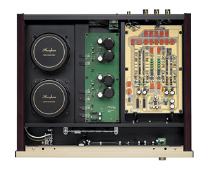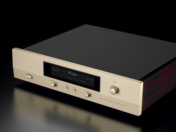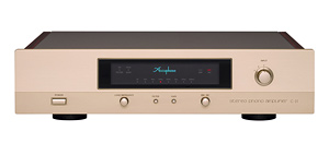 Accuphase to firma kojarzona przede wszystkim ze wzmacniaczami, a w drugim rzędzie z odtwarzaczami cyfrowymi – najpierw Compact Disc, a teraz również Super Audio CD. A przecież gdzieś, podskórnie firma kultywowała analogowy „styl myślenia”. Bo przecież każdy przedwzmacniacz i każdy wzmacniacz zintegrowany można wyposażyć w jedną z czterech opcjonalnych „kart” – AD-2810, AD-20, AD-10 – wsuwanych do zaślepionych slotów, będących kompletnymi przedwzmacniaczami gramofonowymi, do których potrzeba było tylko doprowadzić zasilanie. A przecież niegdyś w ofercie tego japońskiego producenta można było znaleźć „wypasione”, hi-endowe modele: C-7, wprowadzony do sprzedaży w kwietniu 1979 i C-17 w październiku 1984. Zwrócili Państwo na tę druga datę? Tak, to moment, w którym format Compact Disc zdobył pierwsze przyczółki w domach i sercach audiofilów. Dwa lata później, w roku 1986 Accuphase sam wszedł do tej „rzeki” z dzielonym odtwarzaczem DP-80/DC-81 i już do idei zewnętrznych przedwzmacniaczy nie wrócił. Aż do marca tego roku (2009), a więc piętnaście lat po poprzednim modelu, kiedy to pojawił się w sprzedaży przedwzmacniacz C-27, swoją nazwą nawiązujący wprost do C-7 i C-17.   Nowy przedwzmacniacz ma wielkość „regularnego” urządzenia i wykonany jest z równą starannością. To złoty, aluminiowy front z aluminium, solidne chassis i zaawansowana budowa wewnętrzna. Ponieważ Accu to firma dbająca o wygodę użytkowników, wyposażyła preamp w aż trzy wejścia, wybierane selektorem na przedniej ściance, wyjście niezbalansowane i zbalansowane (układ jest zbalansowany – wkładki są z natury rzeczy zbalansowane, a masą jest masa ramienia) oraz wybór obciążenia, dostępny z przedniego panelu. Układy elektroniczne zostały oparte wyłącznie o tranzystory, a sygnał prowadzony jest w wielu równoległych torach. Dzięki temu osiągnięto niebywałe wartości mierzalne: szumy dla MM (wzmocnienie 30 dB) wynoszą -110 dB, zaś przy MC (wzmocnienie 60 dB) - 98 dB. Odchyłka krzywej RIAA wynosi 0,5 dB, w paśmie 10 Hz – 100 000 kHz (dla MM) oraz 0,3 dB, przy takim samym paśmie (dla MC). Zniekształcenia (THD) w paśmie 20 Hz-20 kHz wynoszą 0,002%. Powtórzę za stroną firmową: „To wybitne wartości”.   Płyty użyte do odsłuchu: ODSŁUCH   Przedwzmacniacz Accuphase’a gra niezwykle perlistym, wyważonym dźwiękiem. Można nawet powiedzieć, ze delikatnym. Blachy z płyty Madeleine Peyroux miały słodki, delikatnie zaokrąglony posmak, choć było ich sporo. C-27 gra bowiem nieco jaśniejszym dźwiękiem niż np. Steelhead Manleya czy Sensor Prelude IC RCM Audio. Taki Ayon Polaris II (a właściwie jego sekcja RIAA) jest znacząco ciemniejsza i ma punkt ciężkości przesunięty bardziej w kierunku wyższego basu.    A przecież nie jest to urządzenie ostre. Raczej ‘miękkie’, raczej ‘delikatne’, raczej ‘perliste’. Tak właśnie słychać blachy. Te nagrane na płycie Czesława Niemena Katharsis, w kończącym płytę utworze tytułowym są na to dobrym przykładem. Zostały one – przez nacinanie i wybór rodzaju winylu – w Polskich Nagraniach dość mocno od góry ograniczone. Części widma tam po prostu nie ma. Kiedy jednak podepniemy nieco rozjaśnioną wkładkę, albo jaśniejszy przedwzmacniacz, w którym góra co jakiś czas „zaśpiewa” mocniej, wówczas słychać tam artefaktowe wyższe dźwięki. A tych tam nie ma! Słyszałem tę płytę z różnymi wkładkami i Prealpami i jestem pewien tego, co mówię. A C-27 tylko potwierdził tę opinię. Pomimo że góry i wyższego środka jest w nim sporo, to niczego do dźwięku nie dodał, nie „wygenerował” czegoś, czego na płycie nie ma.   Środek pasma jest kremowy. To chyba najlepsze określenie, jakie można w tym przypadku użyć. Zakres ten jest gładki, płynny, jak krem w kremówce (budyniowej:). Prawdę mówiąc przypomina to, jak gra przedwzmacniacz liniowy tego producenta, model C-2810. Co ciekawe, to właśnie mocniejsza góra C-27 będzie kluczem do idealnego jego zgrania się  z topowym systemem Accu opartym np. na wspomnianym C-2810 i końcówce P-7100 (swoją drogą znakomity zestaw). Dostaniemy wtedy wszystko, na czym nam zależy, a barwa przedwzmacniacza gramofonowego wpasuje się świetnie w gładkie brzmienie zestawu.   Jedną z ważniejszych cech (zalet) C-27 jest możliwość łatwej zmiany parametrów obciążenia i wzmocnienia. Prawdę mówiąc, dynamika lepsza była zawsze z wyższym gainem (wzmocnieniem) i tak też polecam odsłuchy nawet wkładek o wyższym niż średnia napięciu wyjściowym. Nie polecałbym łączenia C-27 z wkładką Palo Santos Presentation Sumiko, bo ta, choć znakomita, akcentuje wyższy zakres pasma, a to nie jest pożądane. Bez problemu wpiszą się w tę estetykę wkładki Denona, jak DL-103SA, Celebration II Sumiko czy Koetsu Rosewood Signature. Jeśli chcemy poprawić dynamikę, trzeba sięgnąć po coś z Dynavectora lub Grado. Należy wówczas uważać na to, czy aby nie przesadzimy z wysokimi tonami. Bo to nie jest uniwersalny preamp, który gładko wpasujemy w każdy system. Jak każde urządzenie hi-endowe, wymaga pochylenia się nad „okolicznościami przyrody”. Otrzyma się wtedy niezwykle kremowy, dźwięczny dźwięk o przyjaznej charakterystyce. Nie jest to dźwięk uniwersalny, ale ma wszystkie cechy wysokiego hi-endu. A o to chyba w tym wszystkim chodzi. BUDOWA   C-27 to przedwzmacniacz gramofonowy japońskiej firmy Accuphase, przystosowany do współpracy z wkładkami MM i MC. To pełnowymiarowe, drogie urządzenie, wykonane dokładnie tak samo, jak pozostałe produkty tego producenta, co przejawi się zarówno w dopracowanym każdym detalu budowy wewnętrznej, jak i zewnętrznej – np. ma złocony front, z grubego płata aluminium, pośrodku którego umieszczono przezroczysty płat plastiku, pod którym widoczne są diody wskazujące na wybran